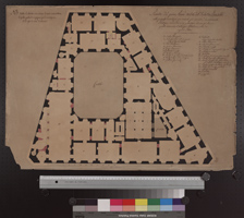 | Transkription | N.B. tutto il colorito nero indica li muri come esistono, il giallo quello che si propone per le variazioni, ed il rosso il nuovo fabbricato |